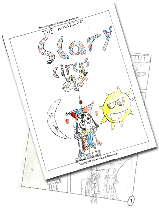 Participants will learn the same foundational cartooning skills as the class, with an added focus on creating their own comic book narrative. They’ll bring their imagination to life with colorful, animated characters and backgrounds in a story to share with family and friends. But it's not all work—camps are meant to be fun! Instructors create a lively, light-hearted, and friendly atmosphere to keep participants engaged, making sure camp becomes a memorable summer experience. Plus, participants enjoy two 15-minute breaks to snack, make friends, and take part in fun games. On the left are actual examples of completed comic books made by participants in my Cartooning Camp. Mr.Patrick's Cartooning and Comic Book Summer Camp runs from May through August, Monday through Friday, from 9 AM to 12 PM.
